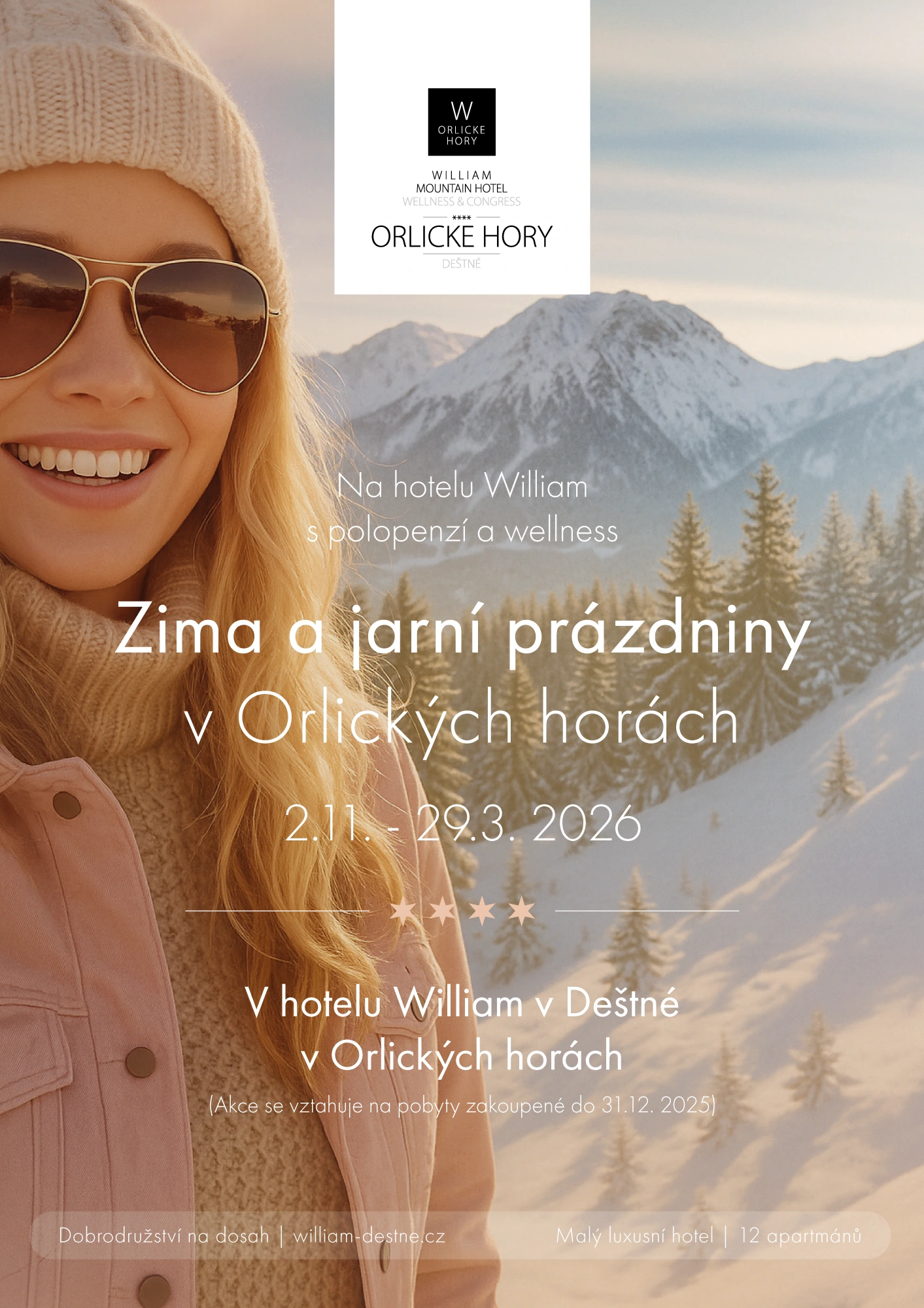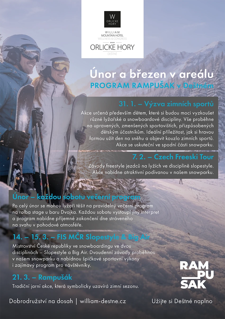 Hotel WILLIAM je právě ten druh ubytování v Orlických horách, který je tu pro Vás – pro všechny, kteří milují maximální pohodlí, útulné pokoje, profesionalitu a výběr toho nejlepšího, co Vám po náročném dni na lyžích či na túře můžeme nabídnout.